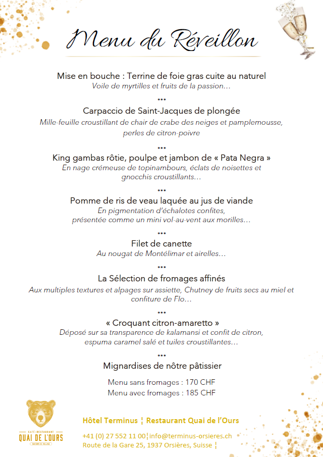 Le chef et sa brigade proposent deux types de restauration, une brasserie et une cuisine semi gastronomique plus soutenue, « La Table de l’Ours », avec deux menus dégustations.